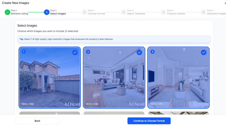 You provide a simple link to your website, and our app does the rest. It pulls any available property listing info from the web page, and lays that information out on property photos that it also pulls from the web page. It then overlays the info onto the property image in many different formats so you can choose the best one for your needs.